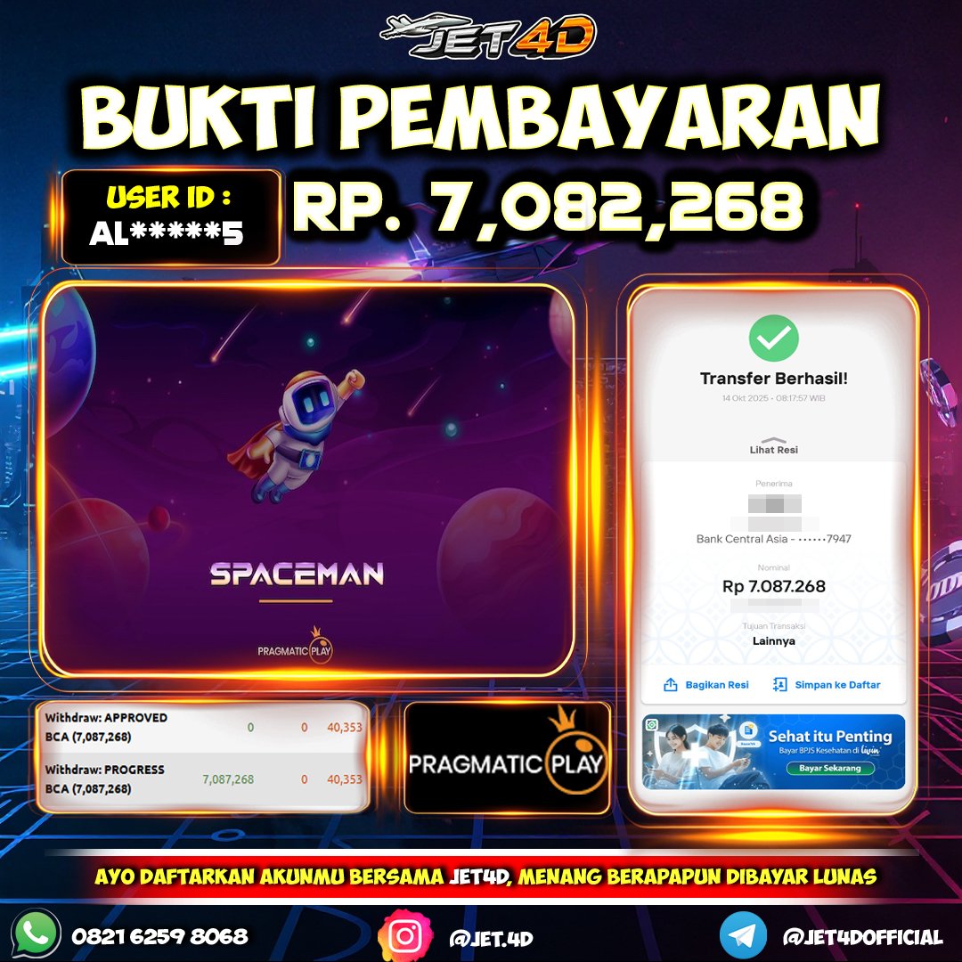 JET4D KEMENANGAN MEROKET Selamat Kepada Member Setia Atas Withdraw Rp 80.000.000 Hari ini. List member yang sebelumnya mendapatkan withdraw besar bisa cek Disini dan di LINK ini.pelanyanan nonstop dan profesional