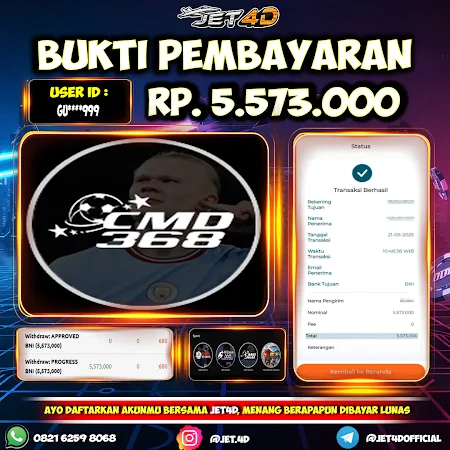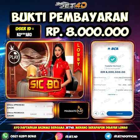 JET4D BUKTI KEMENANGAN MEGA SIC BO Selamat Kepada Member Setia Atas Withdraw Rp 5.000.000 Hari ini. List member yang sebelumnya mendapatkan withdraw besar bisa cek Disini dan di LINK ini.pelanyanan