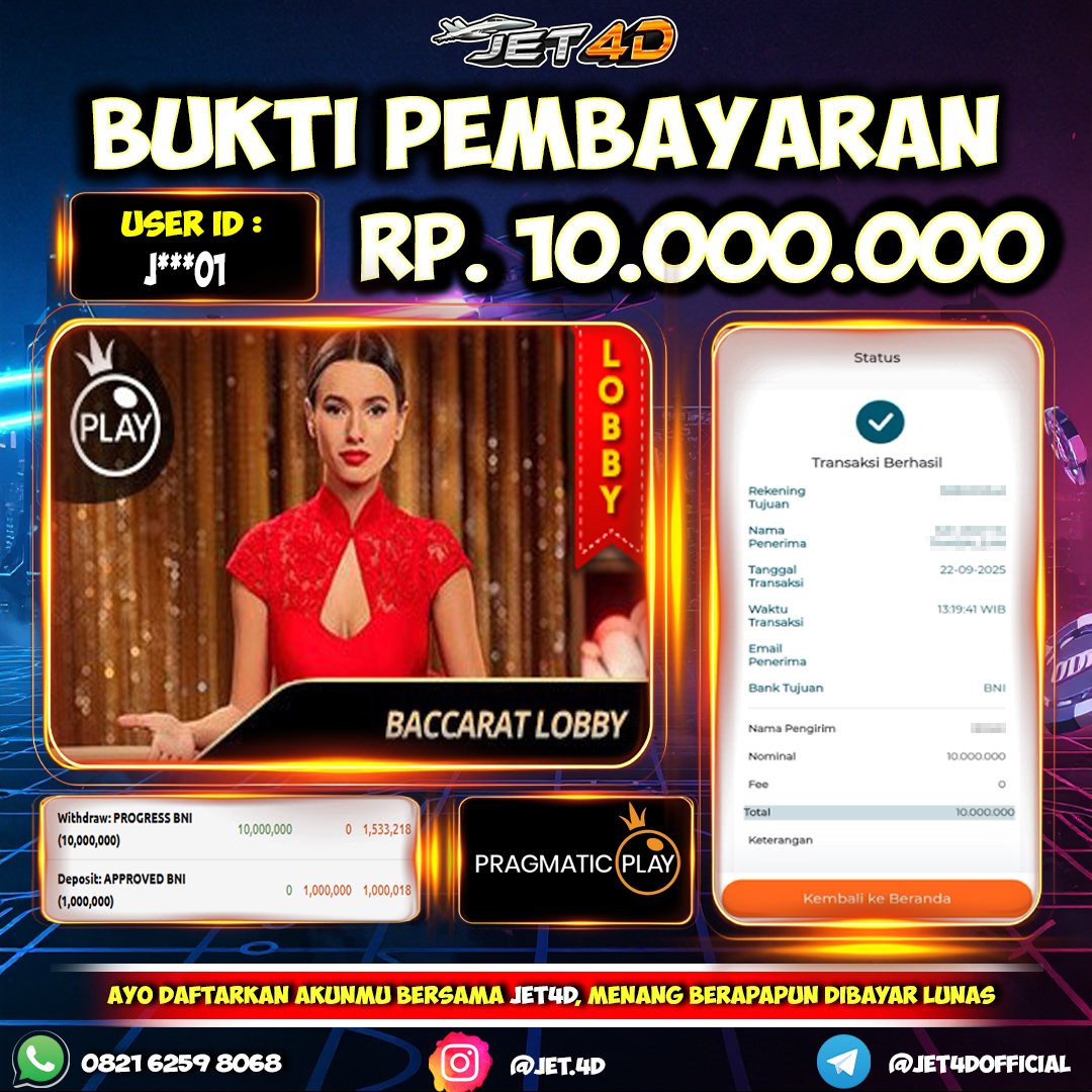 JET4D BACCARAT LOBBY EKSKLUSIF Selamat Kepada Member Setia Atas Withdraw Rp 10.000.000 Hari ini. List member yang sebelumnya mendapatkan withdraw besar bisa cek Disini dan di LINK ini.pelanyanan nonstop dan
