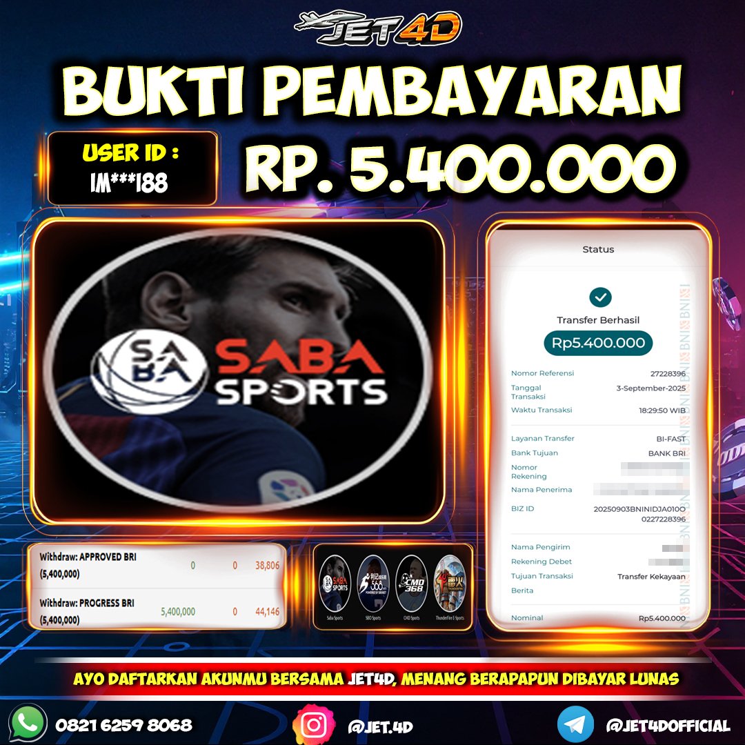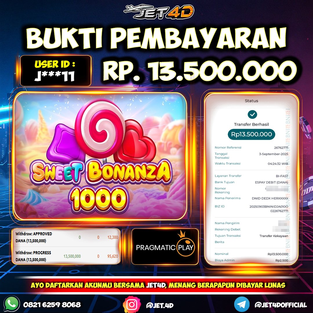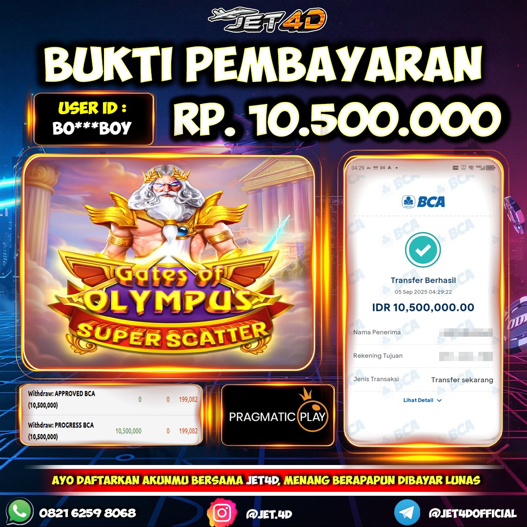 JET4D KEMENANGAN MEGA INSTAN Selamat Kepada Member Setia Atas Withdraw Rp 10.500.000 Hari ini. List member yang sebelumnya mendapatkan withdraw besar bisa cek Disini dan di LINK ini.pelanyanan nonstop dan