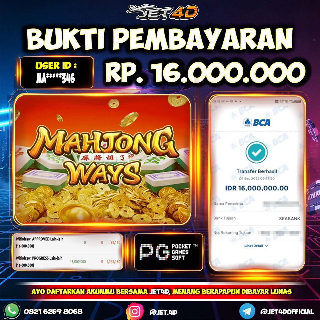 JET4D MAHJONG TOP #1 ASIA Selamat Kepada Member Setia Atas Withdraw Rp 16.000.000 Hari ini. List member yang sebelumnya mendapatkan withdraw besar bisa cek Disini dan di LINK ini.pelanyanan nonstop