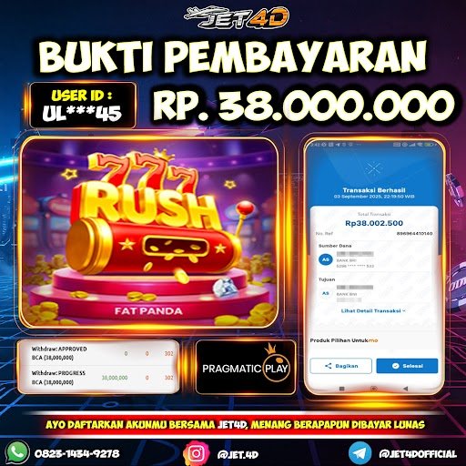 JET4D Slot 777 Rush Selamat Kepada Member Setia Atas Withdraw Rp 38.002.500 Hari ini. List member yang sebelumnya mendapatkan withdraw besar bisa cek Disini dan di LINK ini.pelanyanan nonstop dan profesional