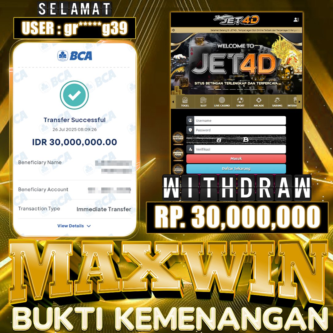 JET4D SITUS TERBAIK 2025 Selamat Kepada Member Setia Atas Withdraw Rp 40.000.000 Hari ini. List member yang sebelumnya mendapatkan withdraw besar bisa cek Disini dan di LINK ini.pelanyanan nonstop dan profesional