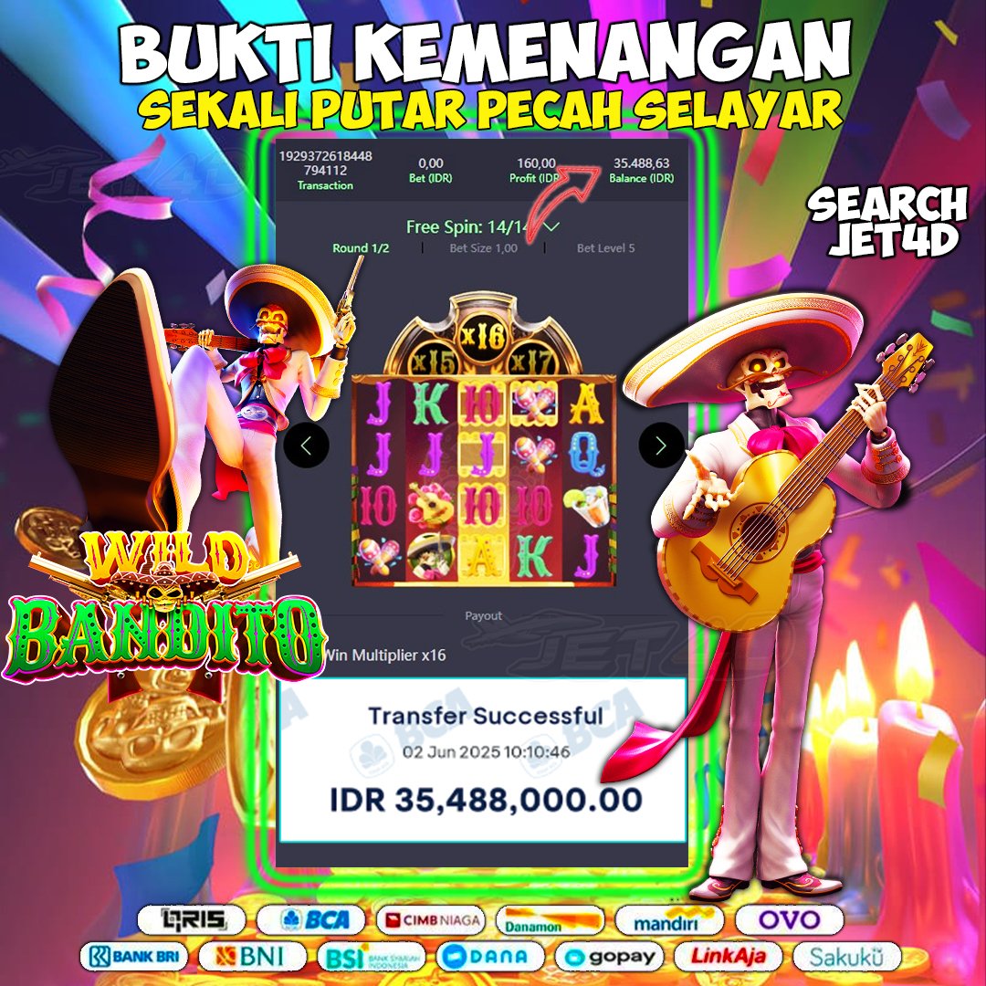 JET4D SEKALI PUTAR PECAH SELAYAR Selamat Kepada Member Setia Atas Withdraw Rp 35.488.000 Hari ini. List member yang sebelumnya mendapatkan withdraw besar bisa cek Disini dan di LINK ini.pelanyanan nonstop dan