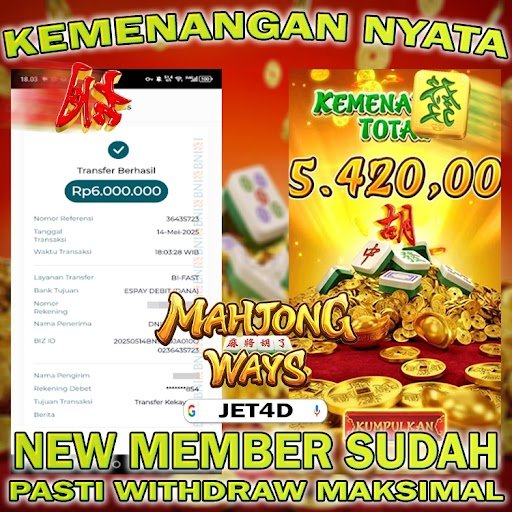 Jet4d Tanpa Pola Tanpa Jam Gacor Pasti Jp Kepada Member Setia Atas Withdraw Rp 6.000.000 Hari ini. List member yang sebelumnya mendapatkan withdraw besar bisa cek Disini dan