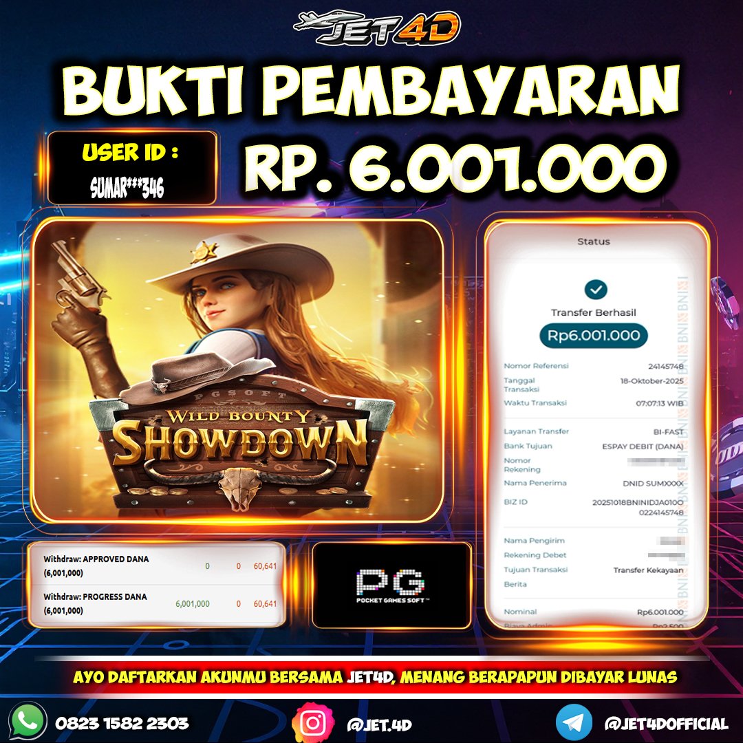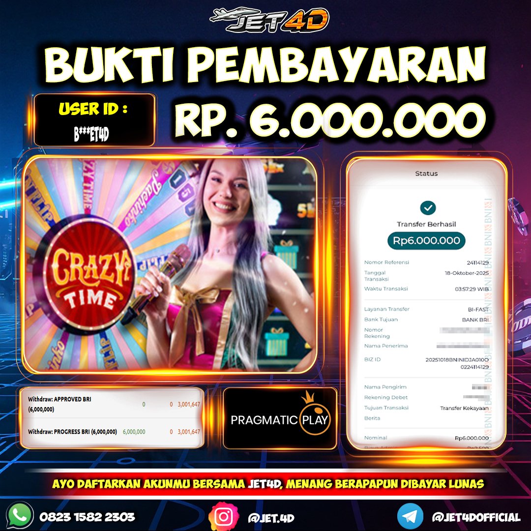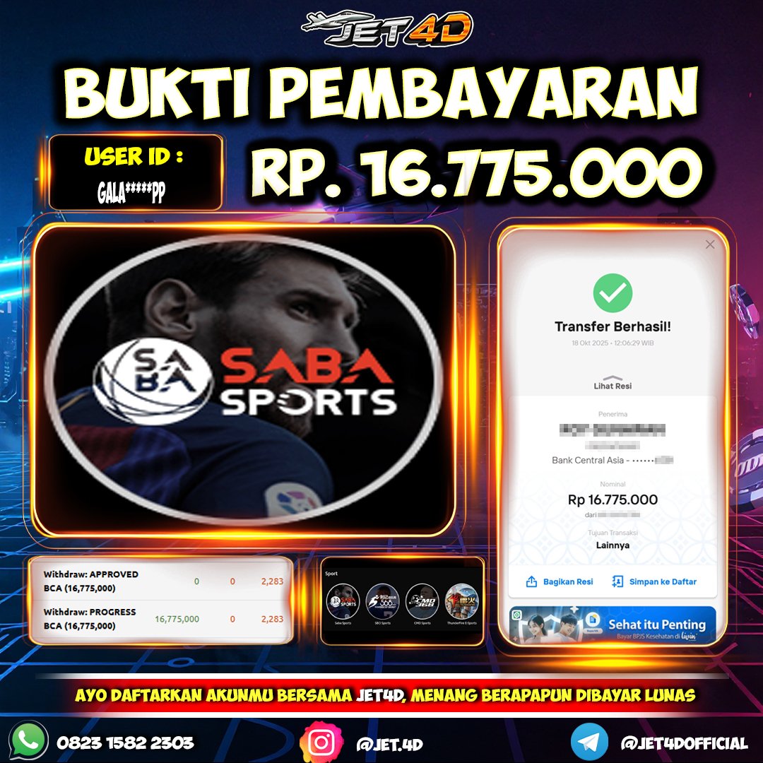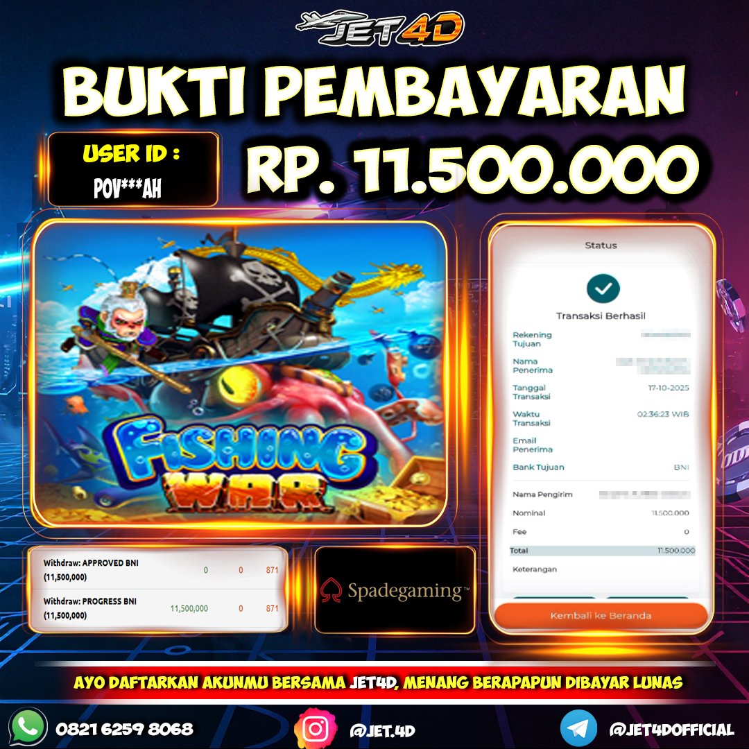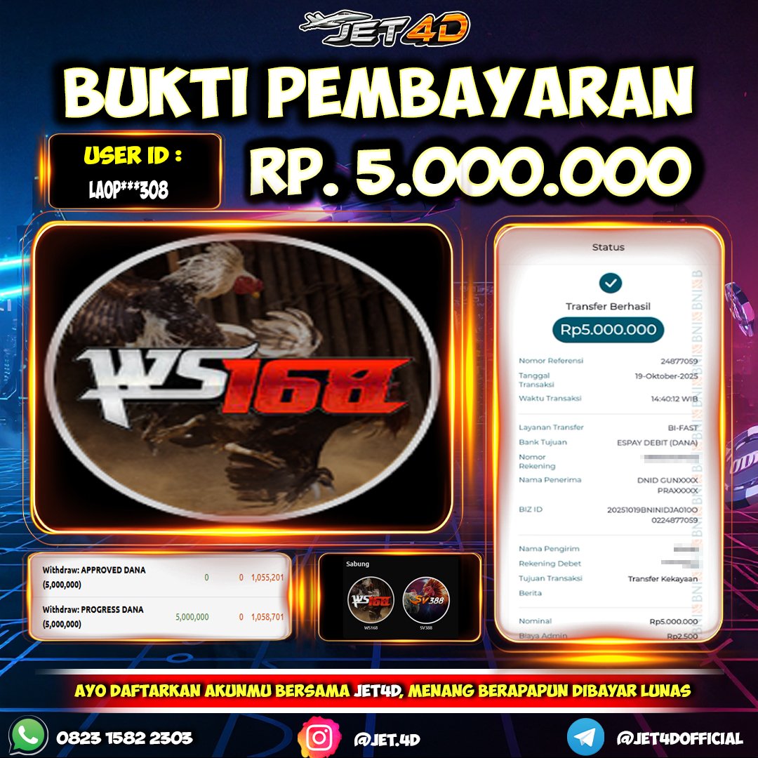 JET4D ADU JAGO MENANG BESAR Selamat Kepada Member Setia Atas Withdraw Rp 5.000.000 Hari ini. List member yang sebelumnya mendapatkan withdraw besar bisa cek Disini dan di LINK ini.pelanyanan nonstop