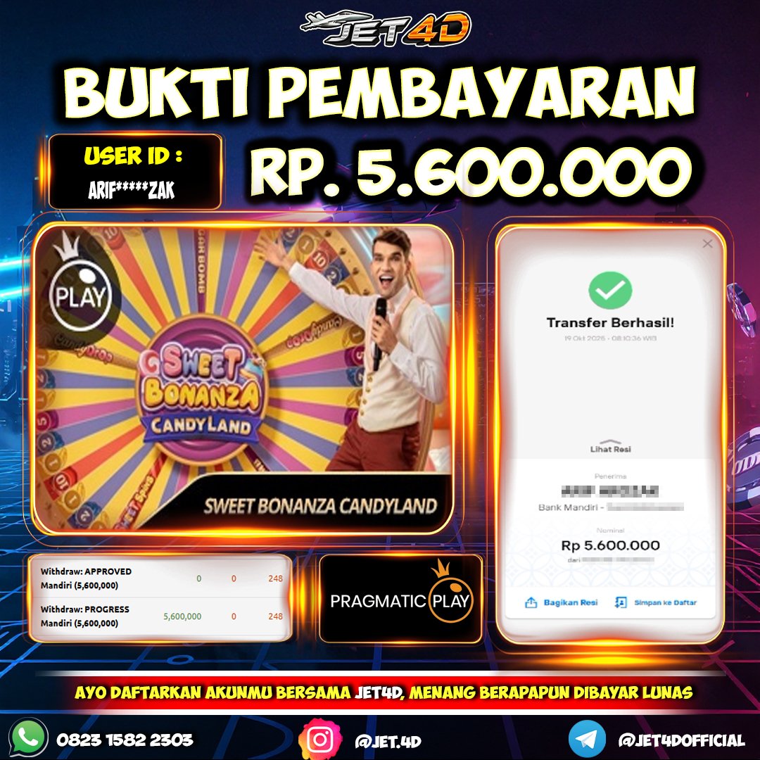 JET4D MANISNYA KEMENANGAN DI CANDYLAND Selamat Kepada Member Setia Atas Withdraw Rp 5.600.000 Hari ini. List member yang sebelumnya mendapatkan withdraw besar bisa cek Disini dan di LINK ini.pelanyanan nonstop