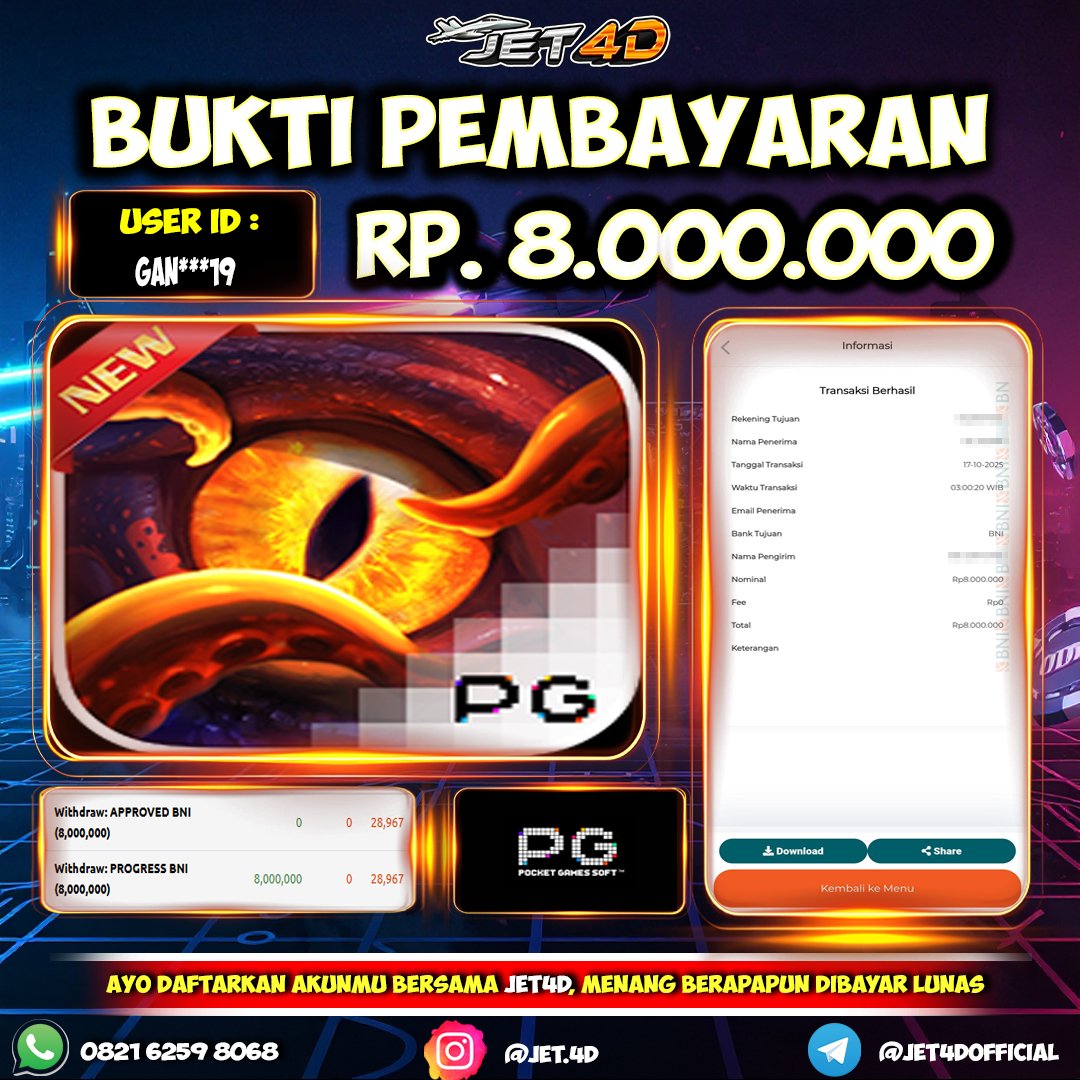 JET4D PECAH SELAYAR PASTI DIBAYAR Selamat Kepada Member Setia Atas Withdraw Rp 8.000.000 Hari ini. List member yang sebelumnya mendapatkan withdraw besar bisa cek Disini dan di LINK ini.pelanyanan nonstop