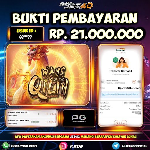JET4D PEMBAYARAN MENANG HARI INI Selamat Kepada Member Setia Atas Withdraw Rp 21.000.000 Hari ini. List member yang sebelumnya mendapatkan withdraw besar bisa cek Disini dan di LINK ini.pelanyanan nonstop