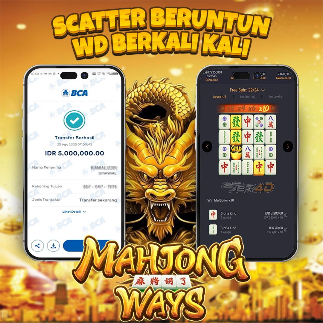 JET4D NO MAHJONG NO PARTY Selamat Kepada Member Setia Atas Withdraw Rp 5.000.000 Hari ini. List member yang sebelumnya mendapatkan withdraw besar bisa cek Disini dan di LINK ini.pelanyanan nonstop