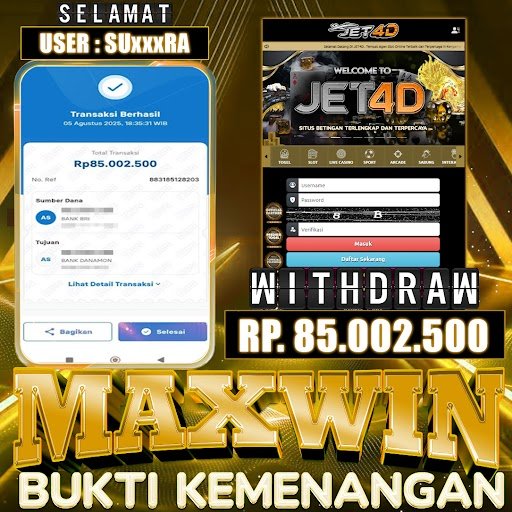 JET4D TANPA POLA PASTI BAWA HOKI Selamat Kepada Member Setia Atas Withdraw Rp 85.002.500 Hari ini. List member yang sebelumnya mendapatkan withdraw besar bisa cek Disini dan di LINK ini.pelanyanan nonstop