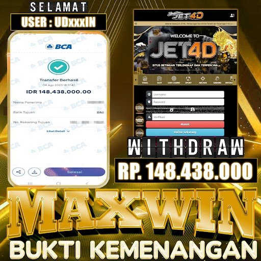 JET4D MODAL BONUS 100% PASTI JP Selamat Kepada Member Setia Atas Withdraw Rp 148.438.000 Hari ini. List member yang sebelumnya mendapatkan withdraw besar bisa cek Disini dan di LINK ini.pelanyanan nonstop