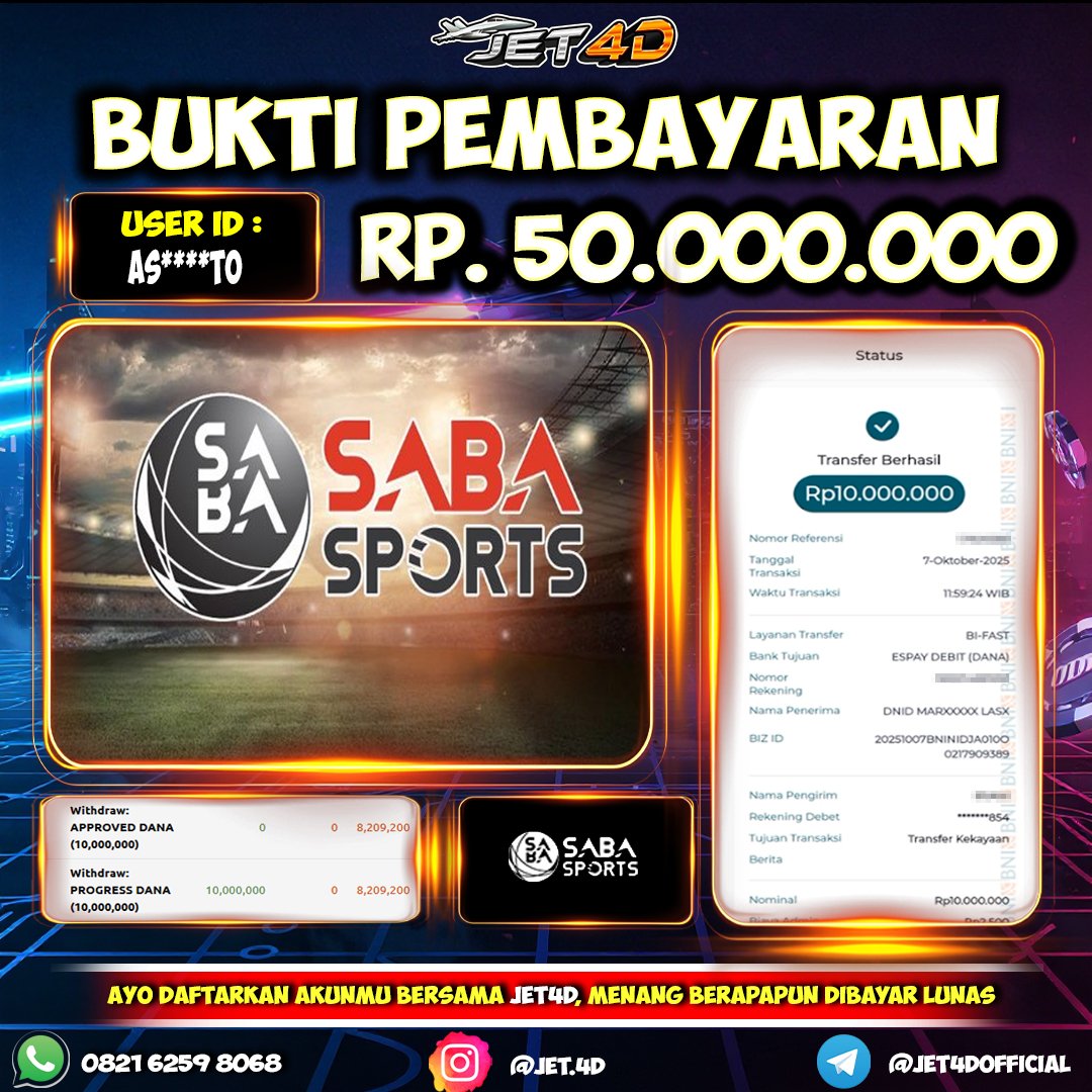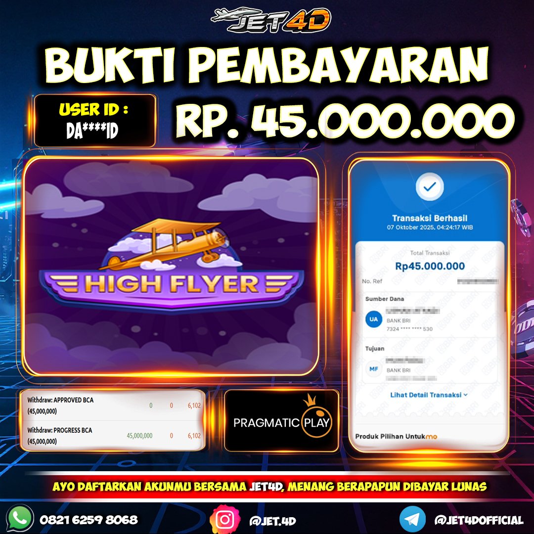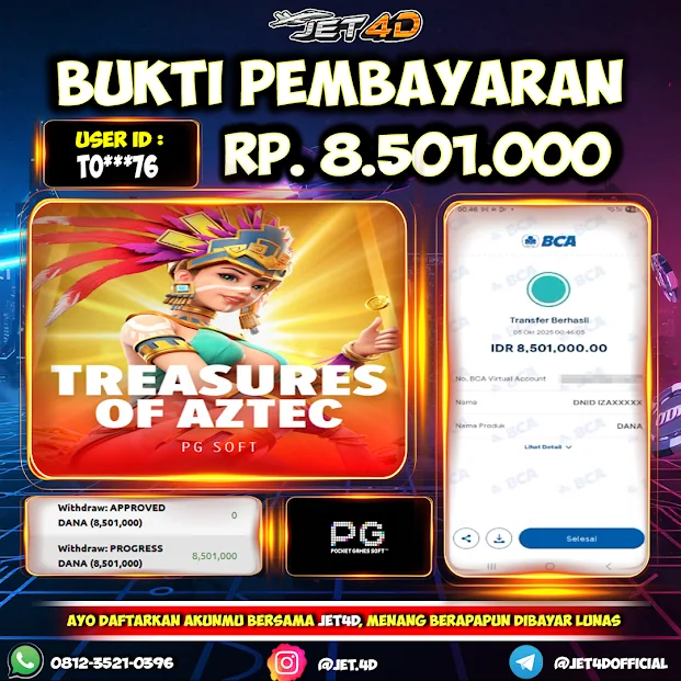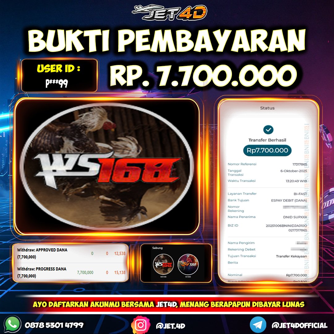 JET4D RAIH KEMENANGAN BESAR Selamat Kepada Member Setia Atas Withdraw Rp 8.501.000 Hari ini. List member yang sebelumnya mendapatkan withdraw besar bisa cek Disini dan di LINK ini.pelanyanan nonstop dan