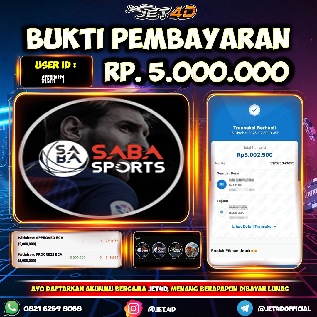 JET4D BANDAR PARLAY #1 🔥Raih Kemenangan Berlipat Ganda Hanya Dengan 1 Tiket Parlay. Main Lebih Seru, Untung Lebih Besar! Selamat Kepada Member Setia Atas Withdraw Rp 5.000.000 Hari ini.