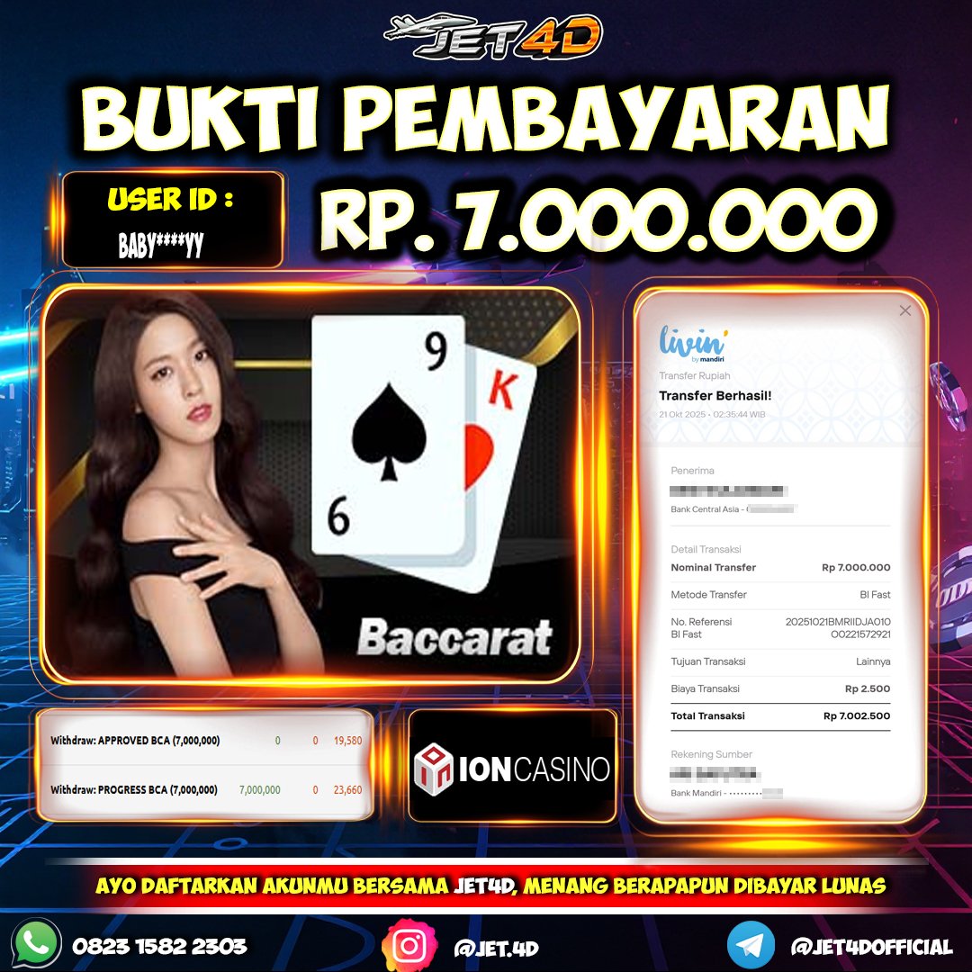 JET4D ELEGAN DENGAN KEMENANGAN NYATA Selamat Kepada Member Setia Atas WithdrawΒ Rp 7.000.000 Hari ini.