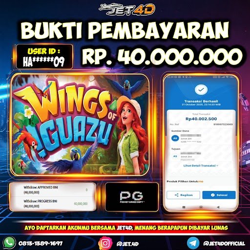 JET4D KEMENANGAN TERBESAR SEASIA  Selamat Kepada Member Setia Atas Withdraw Rp 40.000.000 Hari ini.