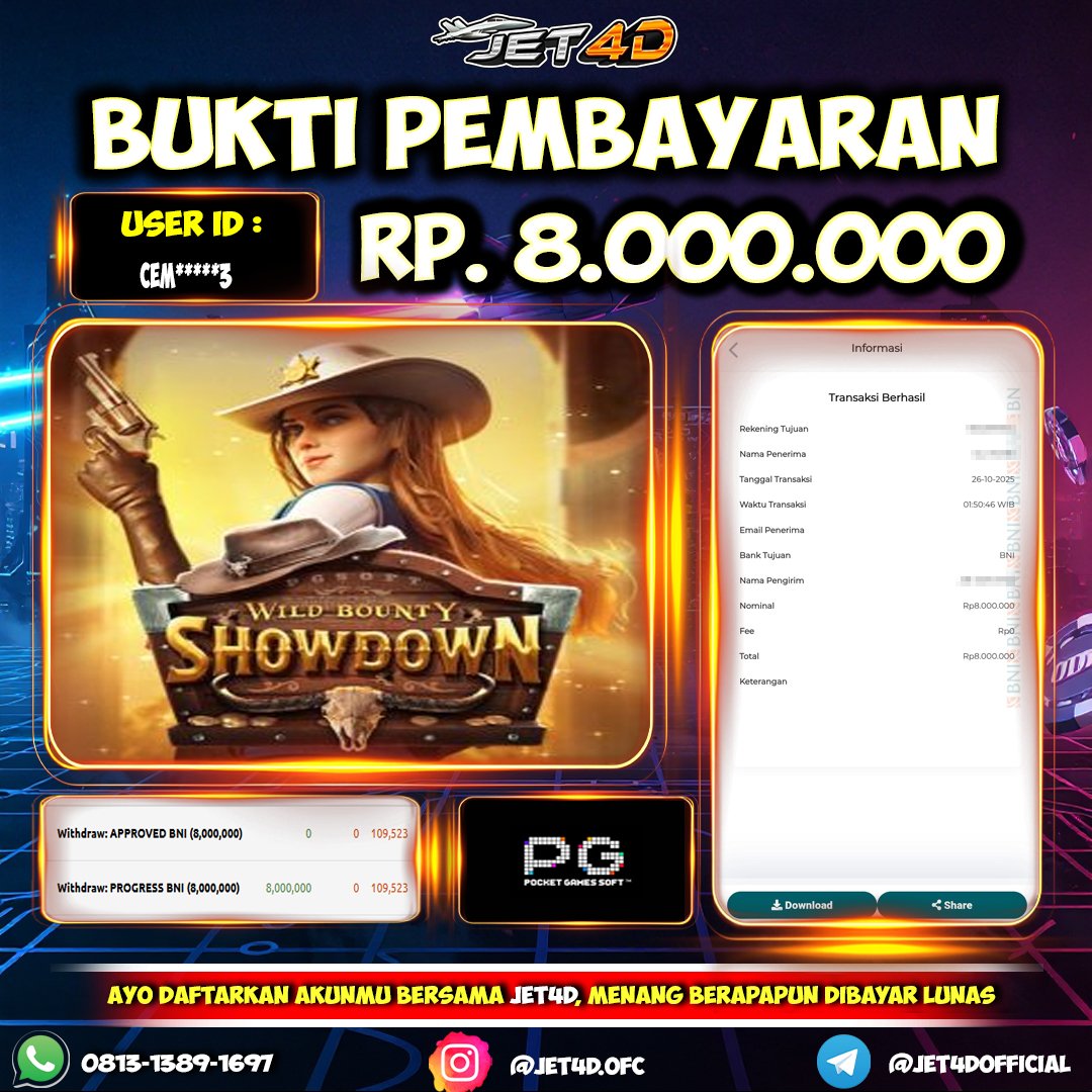 JET4D SEKALI DEPO MENANG SETERUSNYA Selamat Kepada Member Setia Atas Withdrawย Rp 8.000.000 Hari ini.