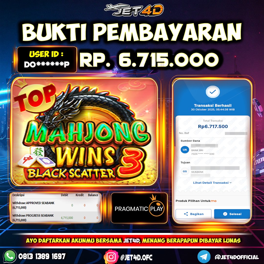 Kabar gembira untuk para pecinta slot Mahjong! ๐Kini hadir game terbaru dari Pragmatic Play yang sedang booming di kalangan pemain slot โ Mahjong Wins 3: Black Scatter, dan pastinya sudah bisa kamu mainkan di JET4D!